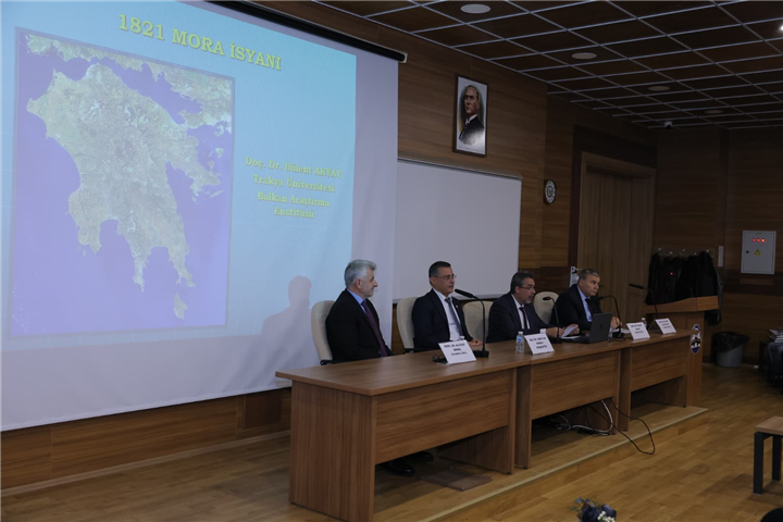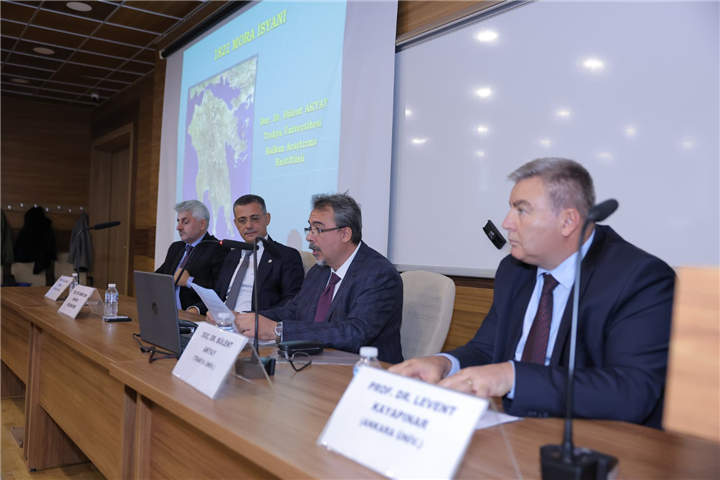 Üniversitemiz, Balkan tarihinin en trajik dönemlerinden birini ele alan önemli bir panele ev sahipliği yaptı. Trakya Üniversitesi Balkan Araştırma Enstitüsü tarafından düzenlenen “204. Yılında 1821 Mora İsyanı ve Tripoliçe Katliamı” başlıklı panel Eczacılık Fakültesi Konferans salonunda gerçekleştirildi. Moderatörlüğünü Enstitü Müdürü Doç. Dr. Sabri Can Sannav’ın üstlendiği panele, Rektör Yardımcısı ve Genel Sekreter Prof. Dr. Mustafa Tan, dekanlar, müdürler, akademisyenler ve öğrenciler katıldı.