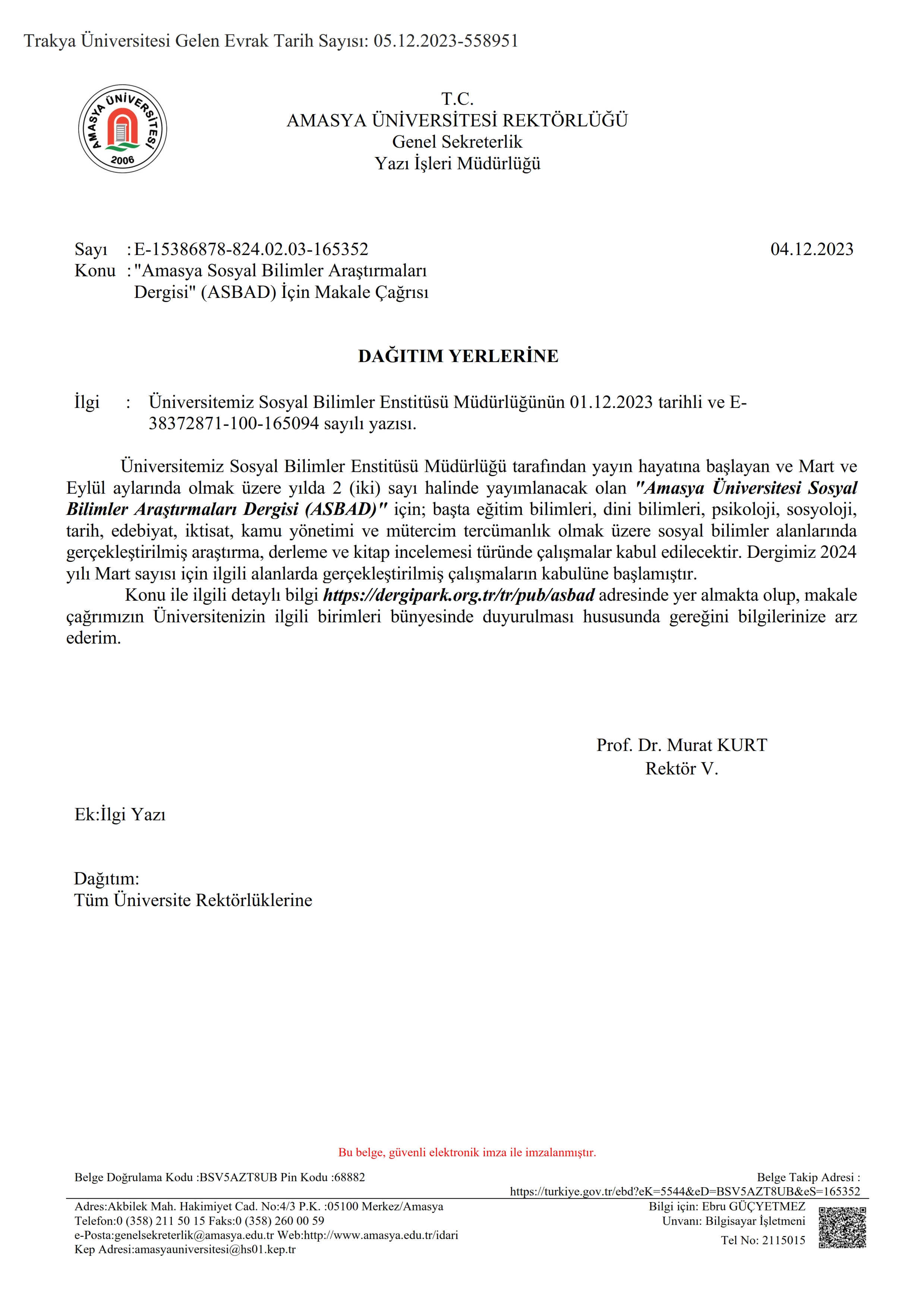 “AMASYA SOSYAL BİLİMLER ARAŞTIRMALARI DERGİSİ" (ASBAD) İÇİN MAKALE ÇAĞRISI