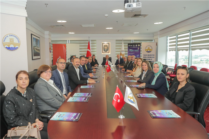 Projenin hayata geçirilmesinde önemli katkılar sunan kurumların iş birliğini duyurmak ve 23–25 Ekim 2025 tarihlerinde gerçekleştirilecek etkinliğe ortak bir davet sunmak amacıyla düzenlenen imza töreni, Trakya Üniversitesi Rektörlük Binası’nda gerçekleştirildi.