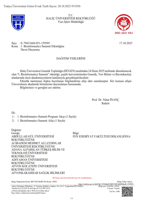 1. BİOİNFORMATİCS SUMMİT ETKİNLİĞİNE DAVET DUYURUSU