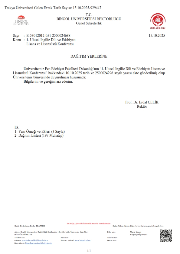 1. ULUSAL İNGİLİZ DİLİ VE EDEBİYATI LİSANS VE LİSANSÜSTÜ KONFERANSI