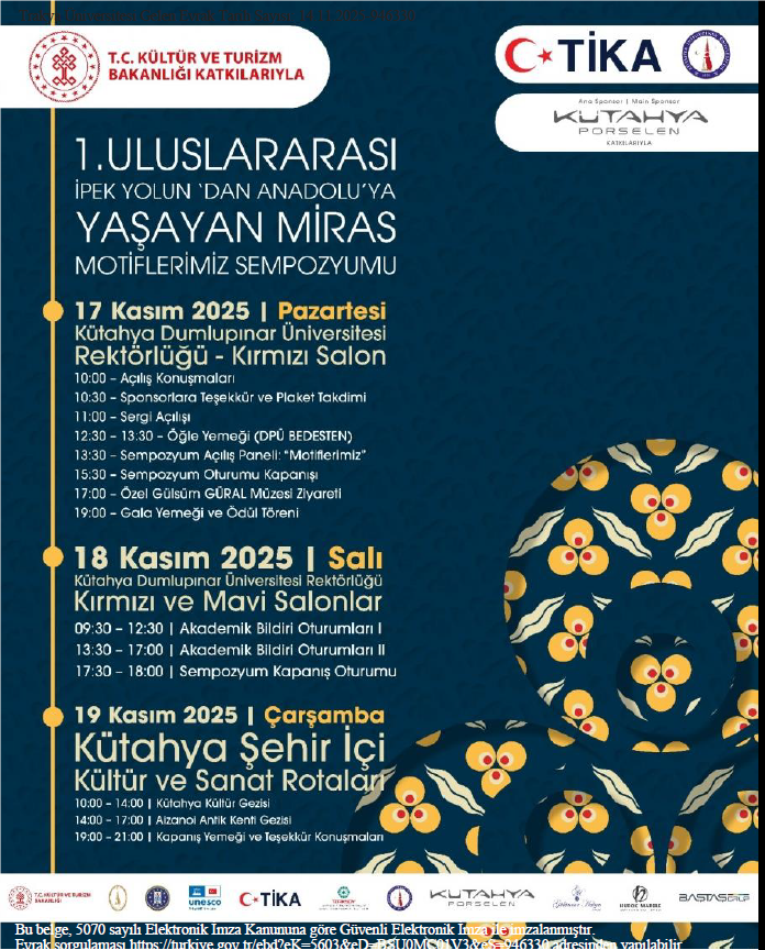 1. ULUSLARARASI İPEK YOLU'NDAN ANADOLU'YA YAŞAYAN MİRAS MOTİFLERİMİZ SEMPOZYUMU