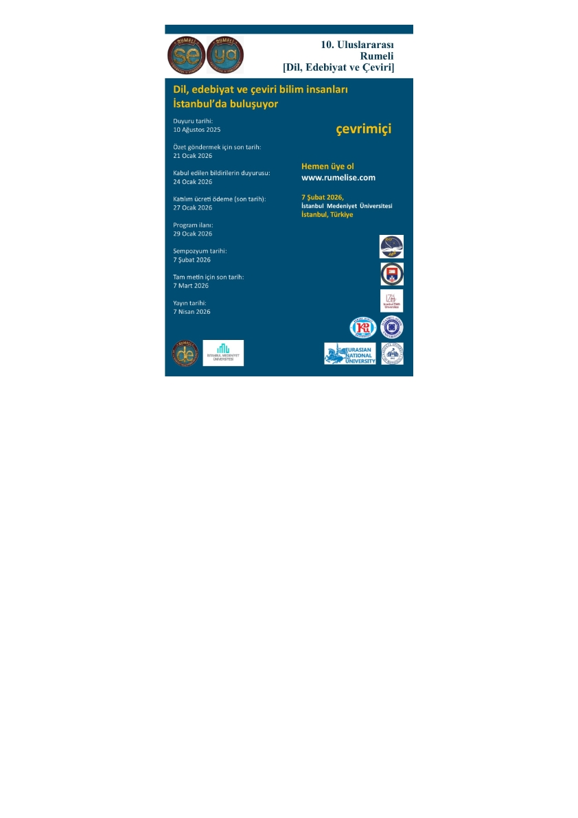 10. ULUSLARARASI RUMELİ [DİL, EDEBİYAT VE ÇEVİRİ] SEMPOZYUMU DUYURUSU