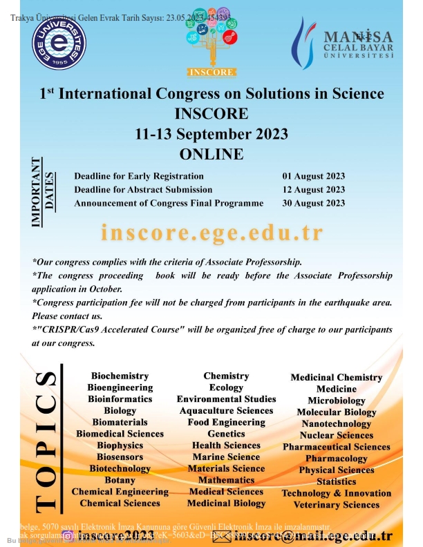 1st INTERNATIONAL CONGRESS ON SOLUTIONS IN SCIENCE (INSCORE)