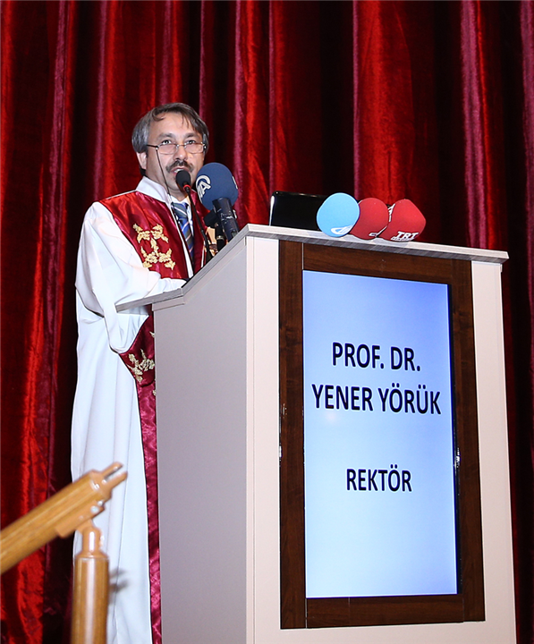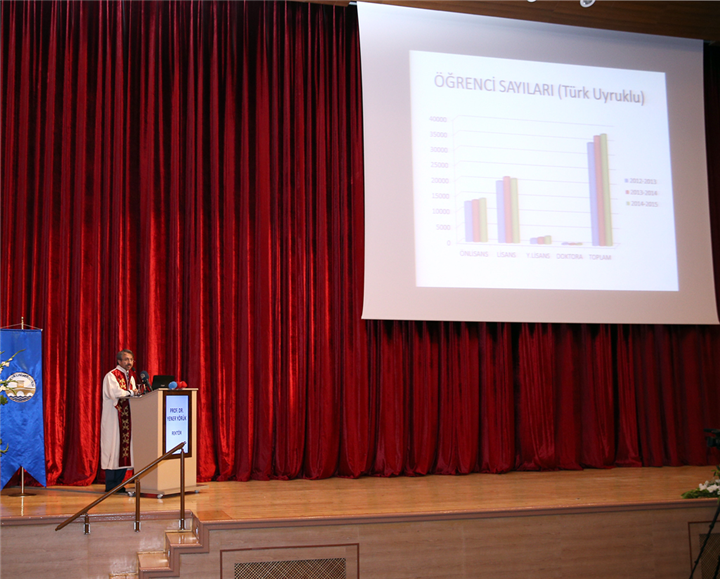 Rektörümüz Prof. Dr. Yener Yörük yaptığı açılış konuşmasında üniversitemizin son üç yılına ilişkin değerlendirmelerde bulundu. Rektörümüz Üniversitemizde bilimsel araştırmalar ve AR-GE çalışmalarının sayılarının her geçen gün arttığını ve Üniversitemizin artık akademisyenlerin projelerini finanse edebildiğini söyledi. Rektörümüz, Trakya Üniversitesi olarak lisans, yüksek lisans ve doktora alanlarında yeni programlar açıldığını ve bu programlara hem Ülkemizden hem yurt dışından önemli bir talep olduğunu belirtti. Uluslararasılaşma alanında Üniversitemizin başarılarına da değinen Rektör Prof. Dr. Yener Yörük, 36 Üniversitenin katılımı ile kurulan Balkan Üniversiteleri Birliği’nin geçtiğimiz günlerde gerçekleşen toplantısında Birliğin genel sekreterliğinin Edirne’de olmasının gurur verici olduğunu söyledi. Rektörümüz bilgiye ulaşmanın günümüzde kolaylaştığını ancak nitelikli bilgiye ulaşmanın daha zor olduğunu ifade ederek “inci denizin derinlerinde bulunur, ulaşması zordur nitelikli bilgi de inci gibidir” dedi. Üniversite olarak amaçlarının öğrencilerde bilgiye ulaşma isteği yaratma olduğunu ifade etti. Rektörümüz 2014-2015 Eğitim – Öğretim yılının üniversitemiz ve bölgemiz için hayırlı olmasını diledi.