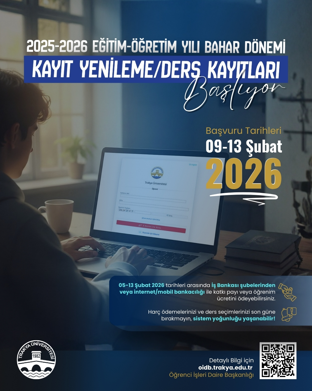 2025-2026 BAHAR DÖNEMİ KAYIT YENİLEME/DERS KAYDI DUYURUSU