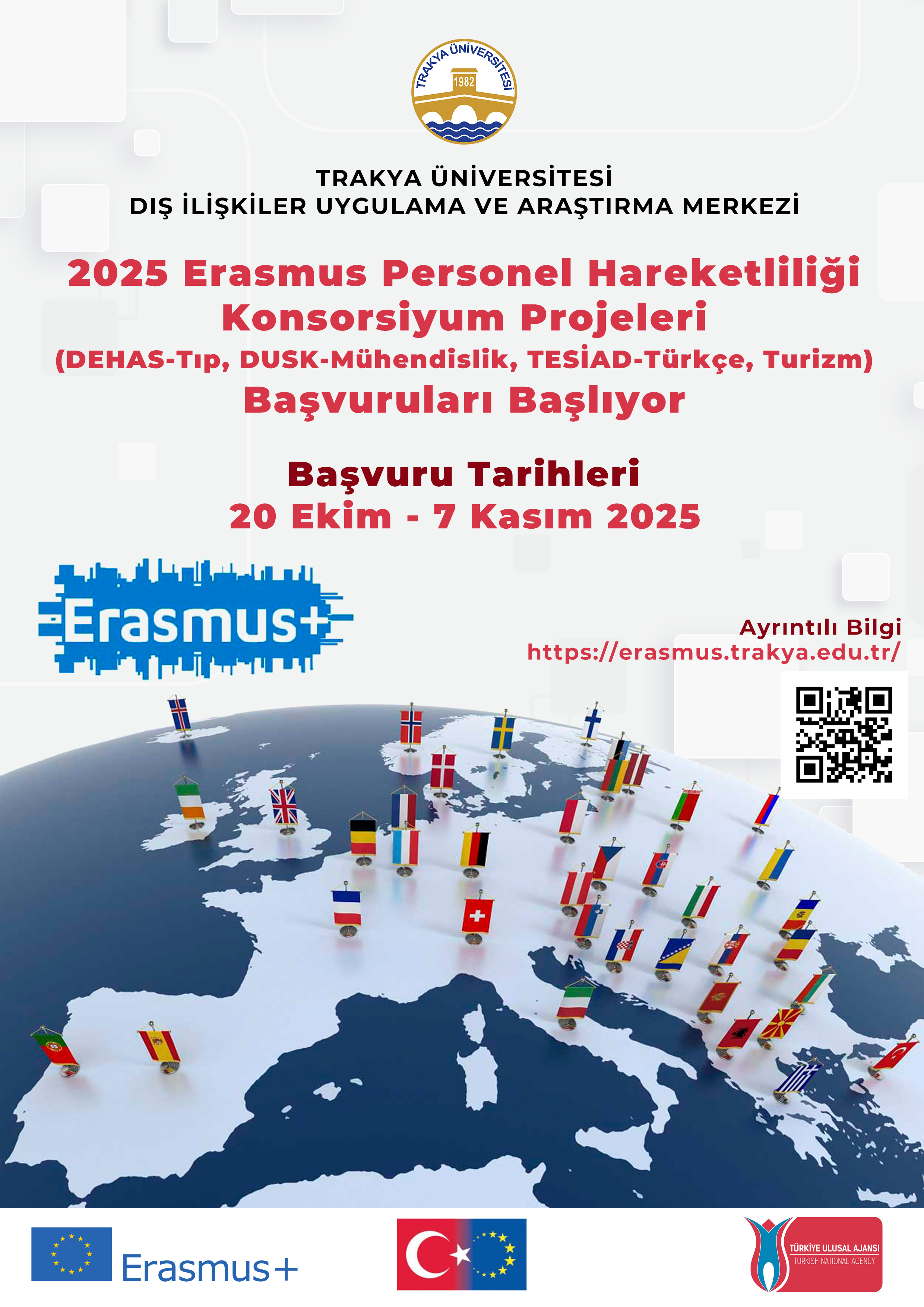 2025 ERASMUS PERSONEL HAREKETLİLİĞİ KONSORSİYUM PROJELERİ (DEHAS-TIP, DUSK-MÜHENDİSLİK, TESİAD-TÜRKÇE, TURİZM) BAŞVURULARI BAŞLIYOR