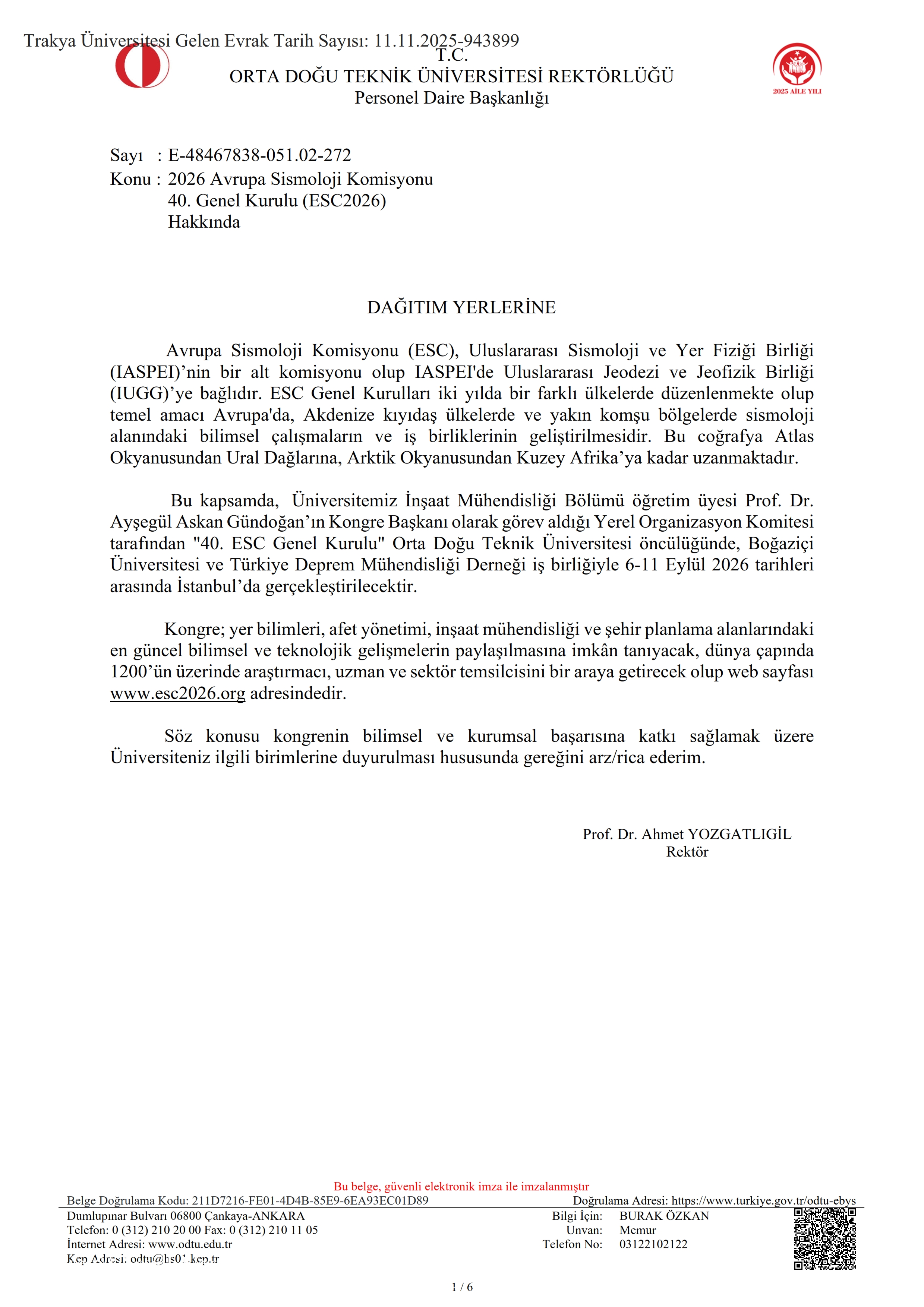 2026 AVRUPA SİSMOLOJİ KOMİSYONU 40. GENEL KURULU (ESC2026)