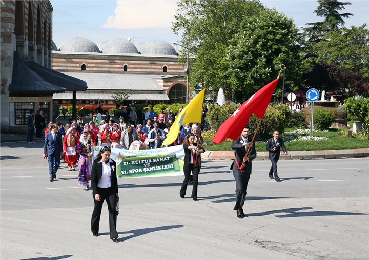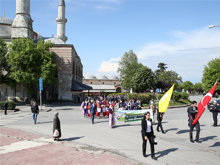 Törenin ardından gerçekleştirilen şenlik yürüyüşü, renkli görüntülere sahne oldu. Üniversitemiz halk oyunları ekibi ve öğrencilerinin katıldığı şenlik yürüyüşü Edirne Belediyesi önünde son buldu. Üniversitemizin halk oyunları ekibi, belediye binasının önünde bir gösteri gerçekleştirdi.