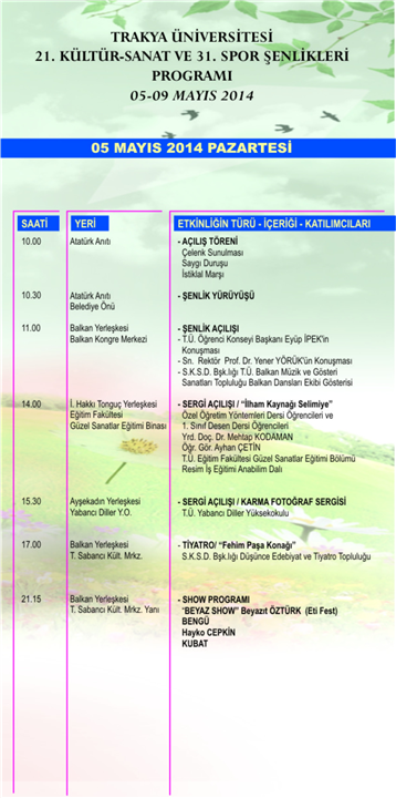 Tüm şenlik programını bilgisayarıza indirmek için tıklayınız.
