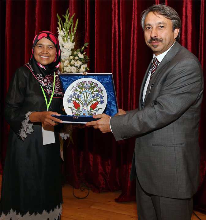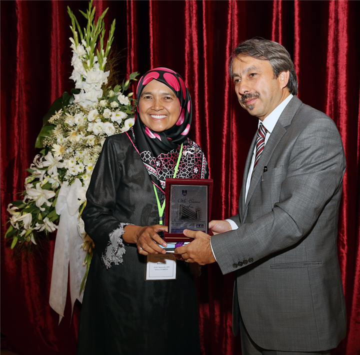 Açılış töreni sonunda Rektörümüz Mara Teknoloji Üniversitesi Muhasebe Araştırma Merkezi Direktörü Prof. Dr. Normah Omar’a plaket verdi.