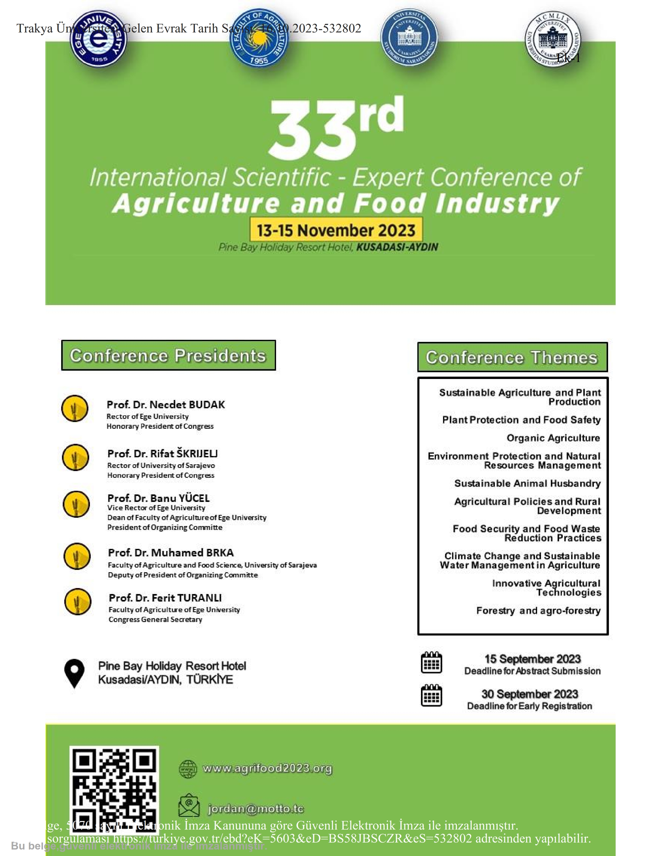 33RD INTERNATİONAL SCİENTİFİC-EXPERT CONFERENCE OF AGRİCULTURE AND FOOD INDUSTRY