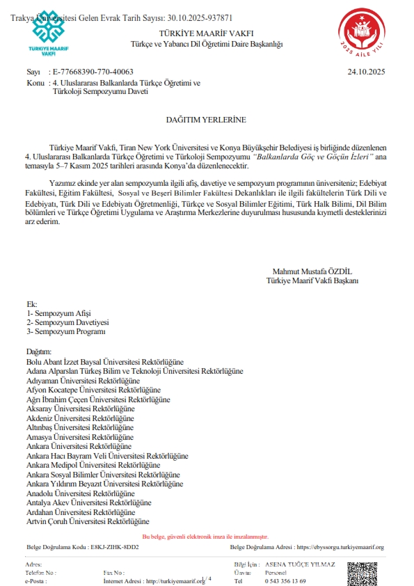4. ULUSLARARASI BALKANLARDA TÜRKÇE ÖĞRETİMİ VE TÜRKOLOJİ SEMPOZYUMU DAVETİ