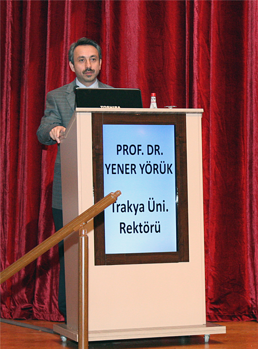 Üniversitemiz Rektörü Prof. Dr. Yener YÖRÜK konuşmasında Uluslararası ilişkilerin öneminden, dil konusundaki eksikliğin giderilmesi için önerilerden söz etti. Rektör Prof. Dr. Yener YÖRÜK konuşmasına şöyle devam etti; "Genç dinamik bir yapımız var. Bu potansiyelimizi fikirlerimizle geliştirmemiz gerek ve uluslararası örgütler bu potansiyelimizin farkında olup bizden çekinmekteler. Misakı millimiz var, bunu asgari mi yoksa azami olarak mı alacağız. Bayrağımızı üniversitemizin başarılarıyla dünyada dalgalandırıyoruz. Gençlerimizin olayların görünen değil arka planını okuması lazım. Barış kavramını kullananların en çok savaşanlar olduğu görülmektedir. Belki bunun arkasındaki realiteyi görmemiz gerek." dedi ve organizasyonu düzenleyenlere teşekkür ederek konuşmasını bitirdi.
