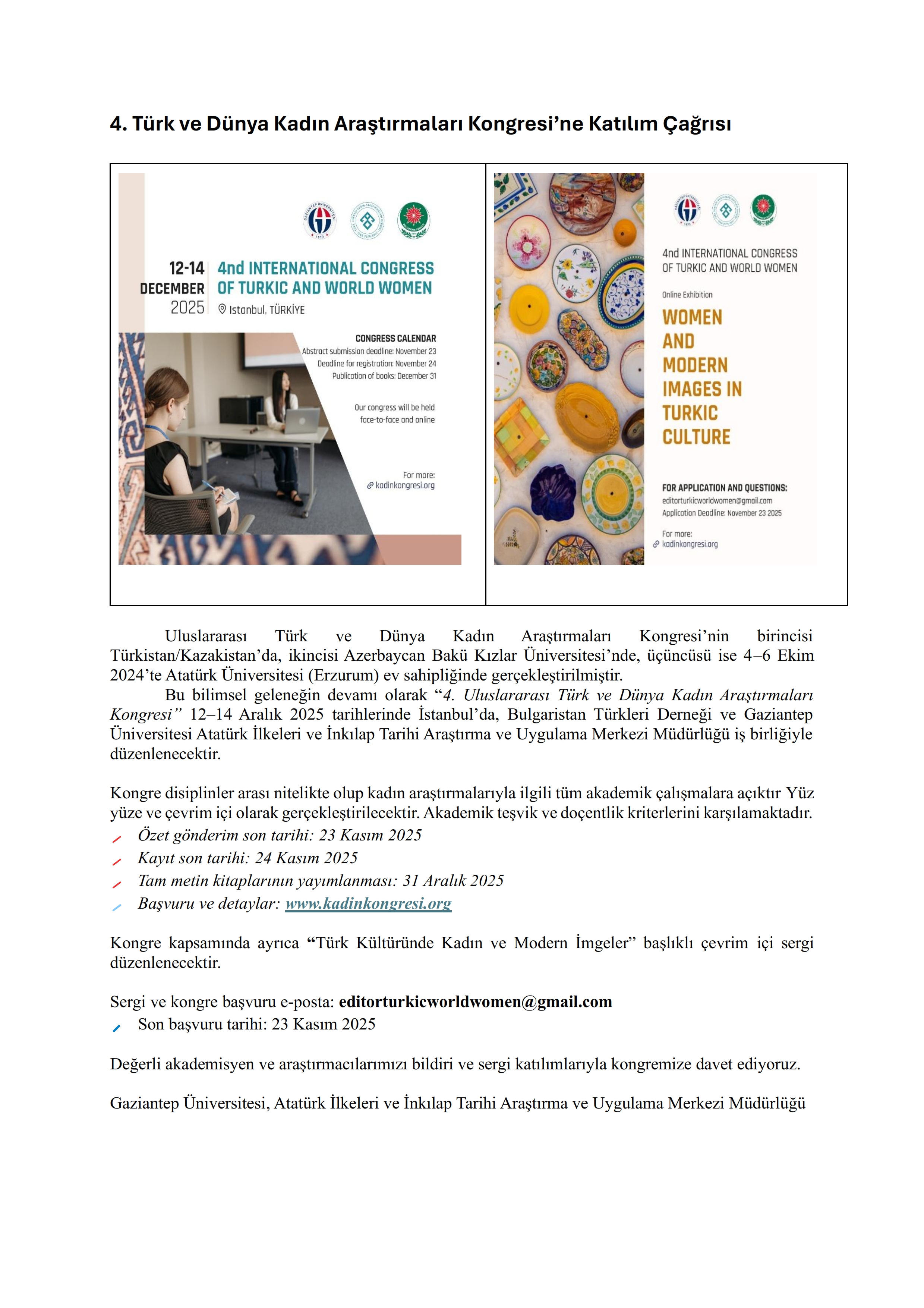 4. ULUSLARARASI TÜRK VE DÜNYA KADIN ARAŞTIRMALARI KONGRESİ