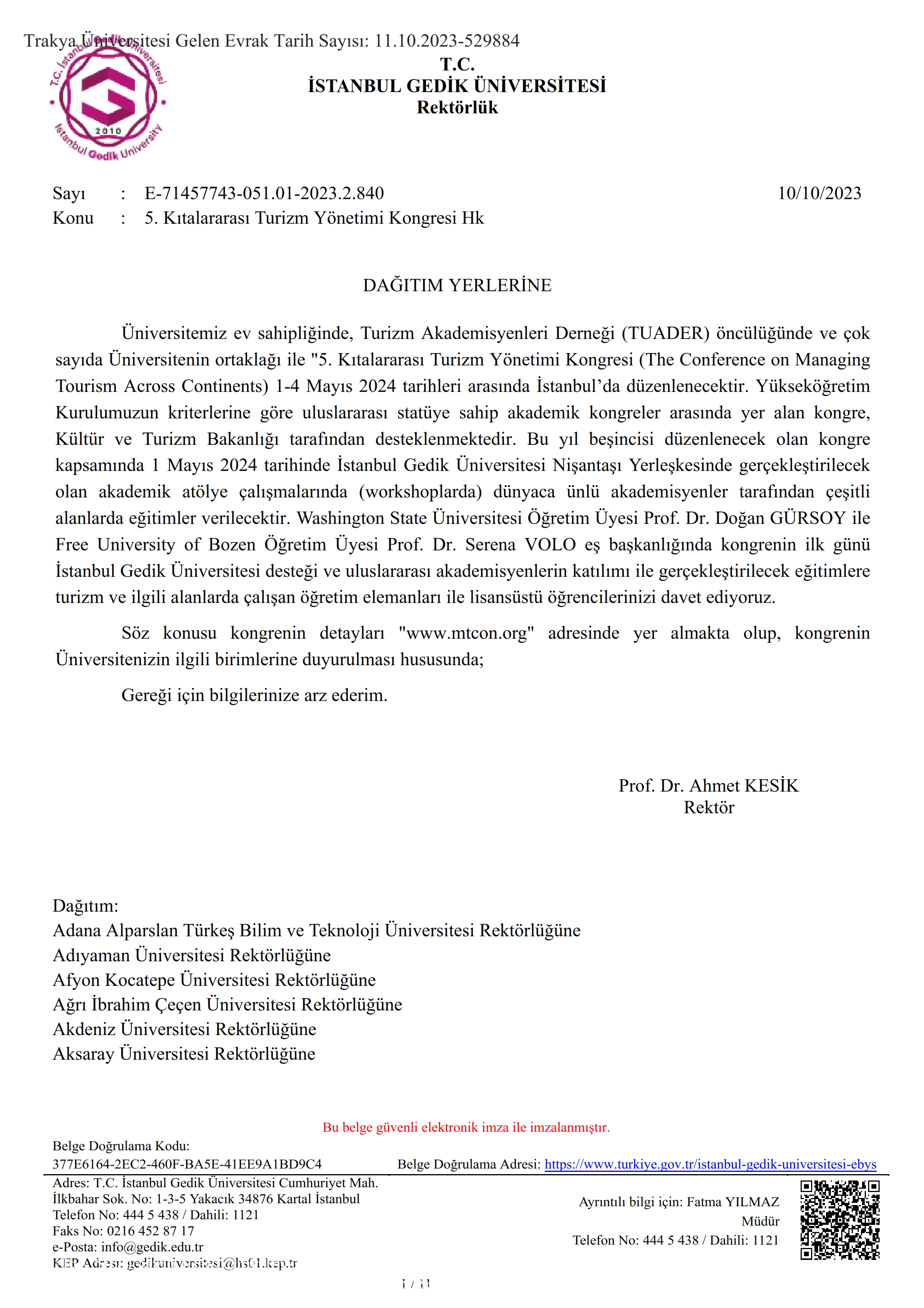 5. Kıtalararası Turizm Yönetimi Kongresi