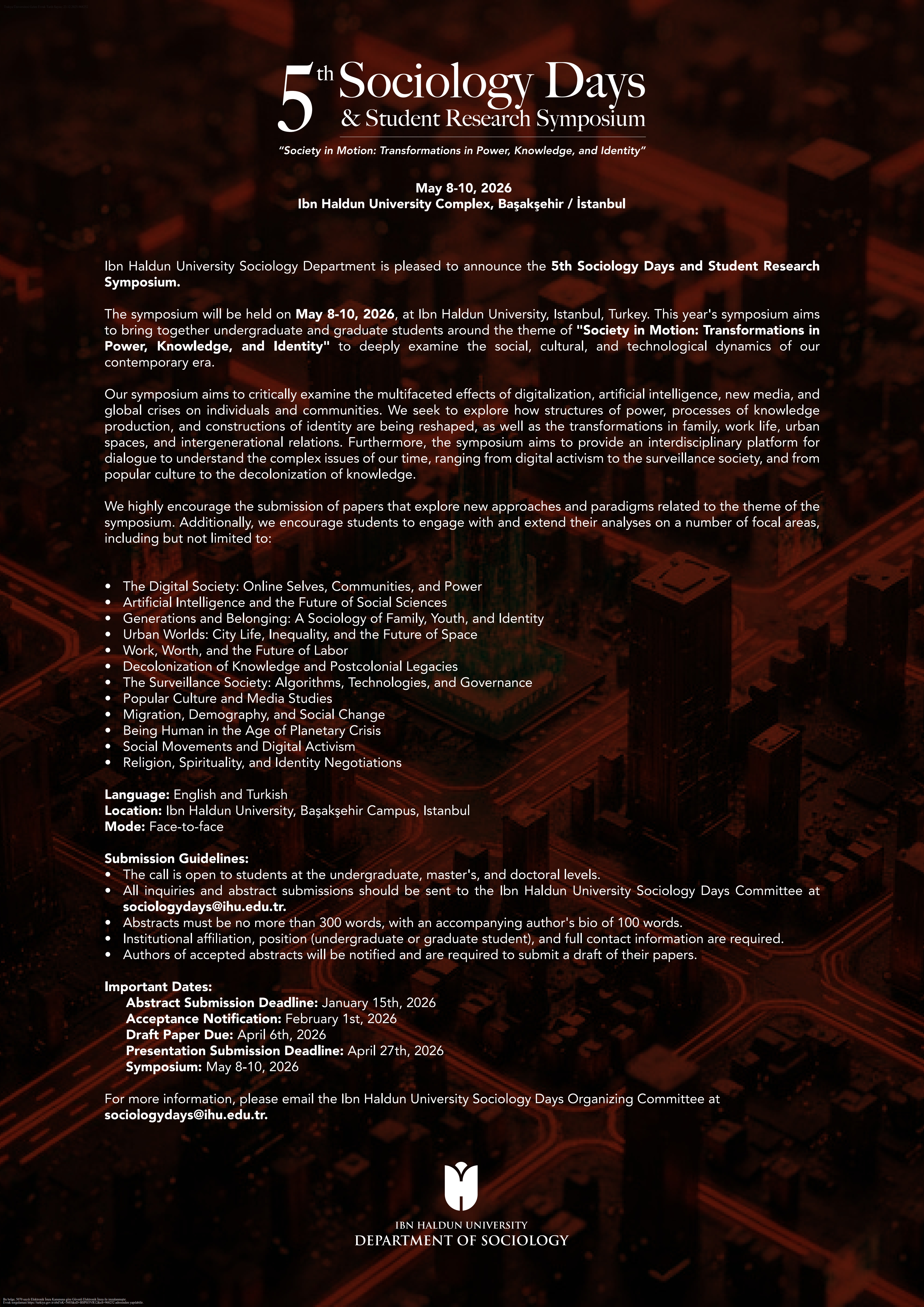 5. SOSYOLOJİ GÜNLERİ VE ÖĞRENCİ ARAŞTIRMA SEMPOZYUMU