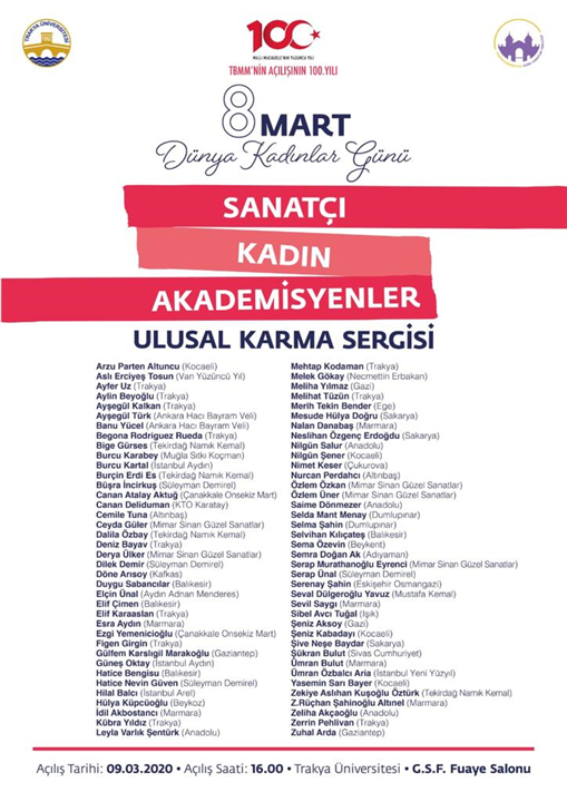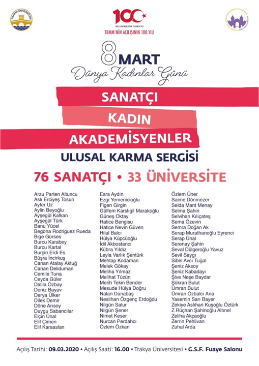8 MART DÜNYA KADINLAR GÜNÜ "SANATÇI KADIN AKADEMİSYENLER" ULUSAL KARMA SERGİSİ