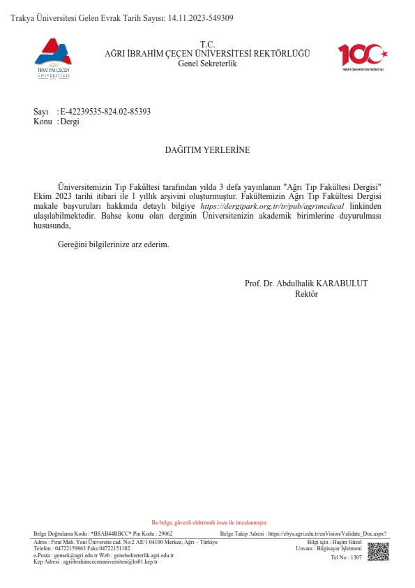 AĞRI TIP FAKÜLTESİ DERGİSİ
