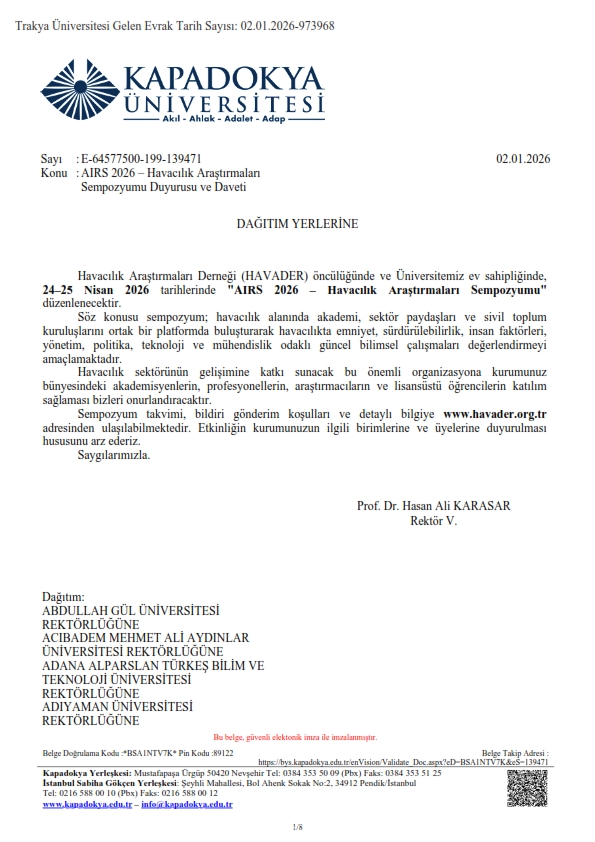 AIRS 2026 – HAVACILIK ARAŞTIRMALARI SEMPOZYUMU DUYURUSU VE DAVETİ