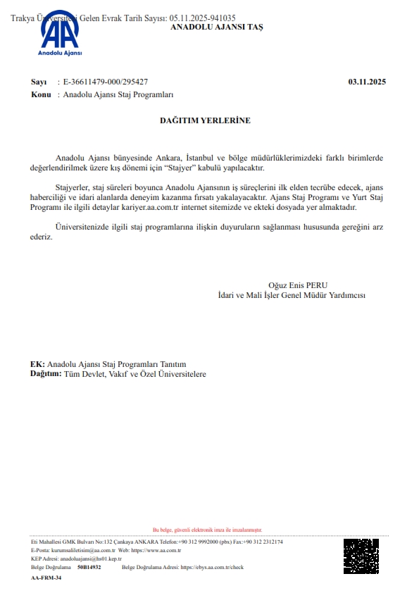 ANADOLU AJANSI STAJ PROGRAMLARI