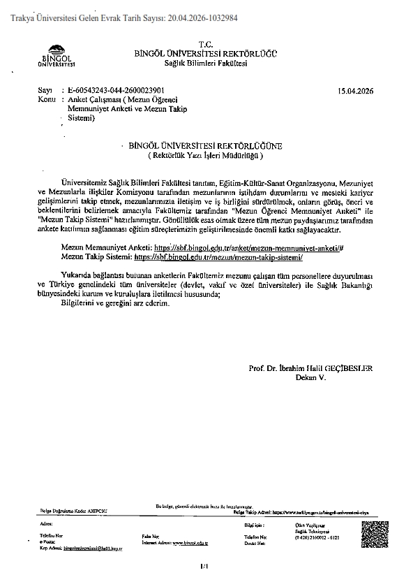 ANKET ÇALIŞMASI (MEZUN ÖĞRENCİ MEMNUNİYET ANKETİ VE MEZUN TAKİP SİSTEMİ)