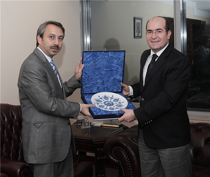 Trakya Üniversitesi ev sahipliğinde 15-16 Kasım 2013 tarihlerinde Trakya Üniversitesi Balkan Kongre Merkezinde düzenlenecek olan Anadolu Üniversite Kütüphaneleri Konsorsiyumu (ANKOS) toplantısı için üniversitemize gelen, ANKOS Yönetim Kurulu Başkanı Ertuğrul ÇİMEN ve üyeler F. Tuba AKBAYTÜRK ÇANAK, İlkay HOLT, Cevat GÜVEN, Sami ÇUKADAR ve İsmail ÇETİNKAYA, 14 Kasım 2013 tarihinde Rektör Prof. Dr. Yener YÖRÜK’ü makamında ziyaret etti.