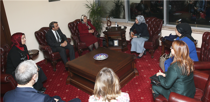 Hastane ziyaretinin ardından Rektörlüğe geçen Dr. Sare Davutoğlu Hanımefendi, Rektörümüz Prof.Dr. Yener Yörük’ü ziyaret etti.