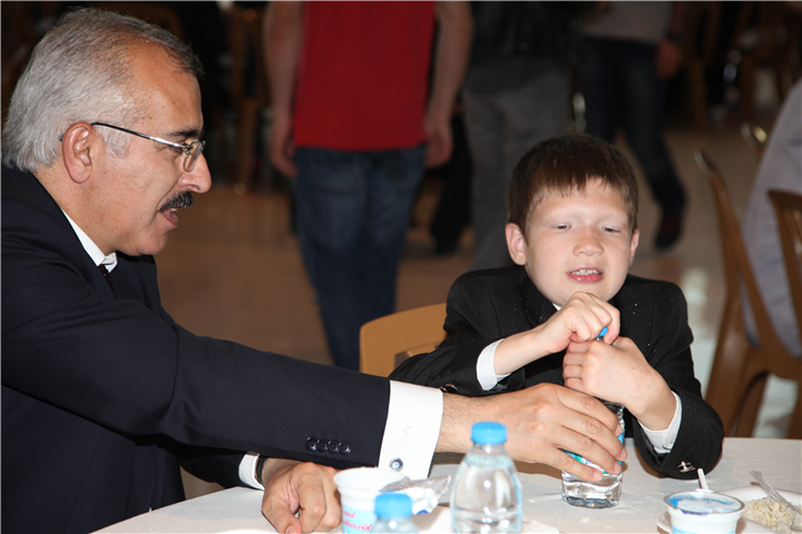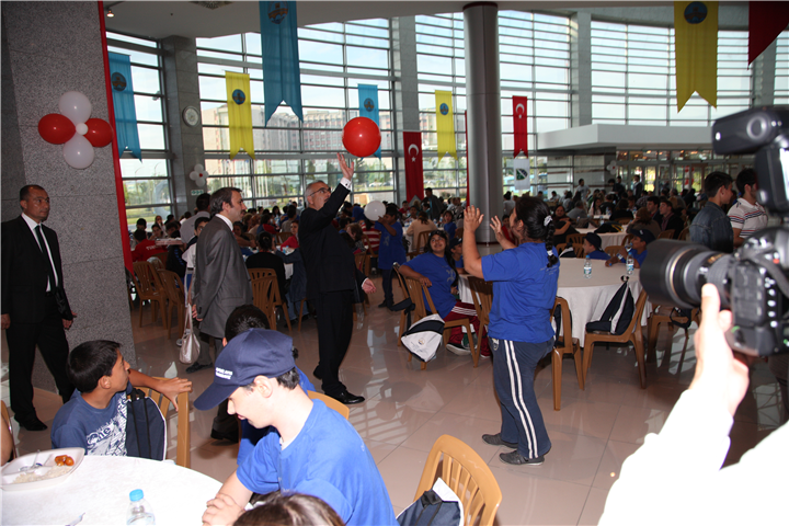 Vali Hasan DURUER, Rektör Prof. Dr. Yener YÖRÜK ve protokol üyeleri çocuklarla beraber yemek yedi ve sohbet etti.