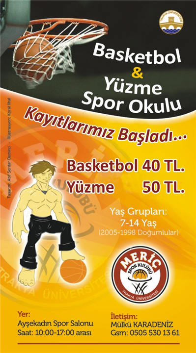 Üniversitemiz Meriç Spor Kulubü Basketbol ve Yüzme Spor Okulu Kayıtlarımız başlamıştır.