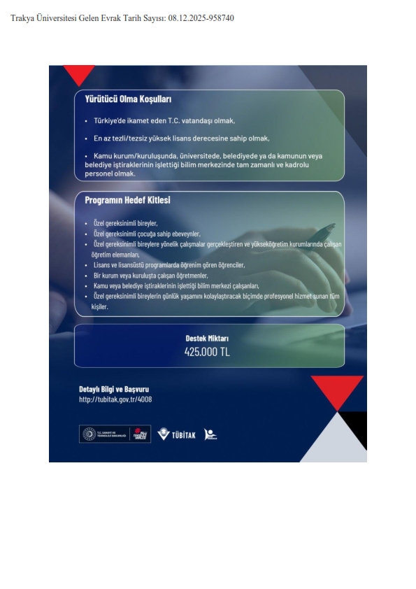 BİLİM VE TOPLUM BAŞKANLIĞI 4008 DESTEK PROGRAMI