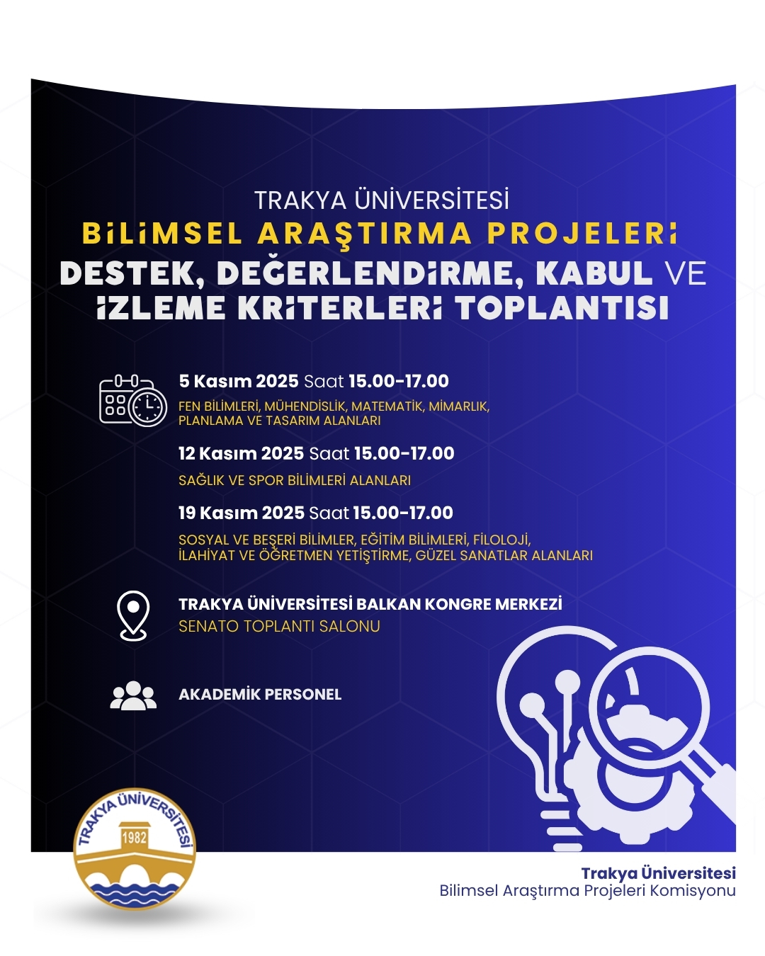 BİLİMSEL ARAŞTIRMA PROJELERİ DESTEK, DEĞERLENDİRME, KABUL VE İZLEME KRİTERLERİ TOPLANTISI