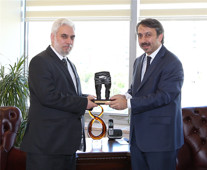 Bulgaristan Bölge Müftüleri Eğitim Semineri Sertifika Töreni nedeniyle Üniversitemizde bulunan Bulgaristan Müslümanlar Başmüftüsü Dr. Mustafa Hacı, 11 Nisan 2014 tarihinde Rektörümüz Prof. Dr. Yener Yörük’ü makamında ziyaret etti. Ziyarette Başmüftü Yardımcısı Yardımcısı Vedat Ahmet de bulundu.