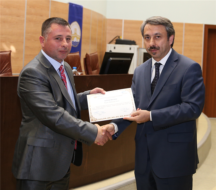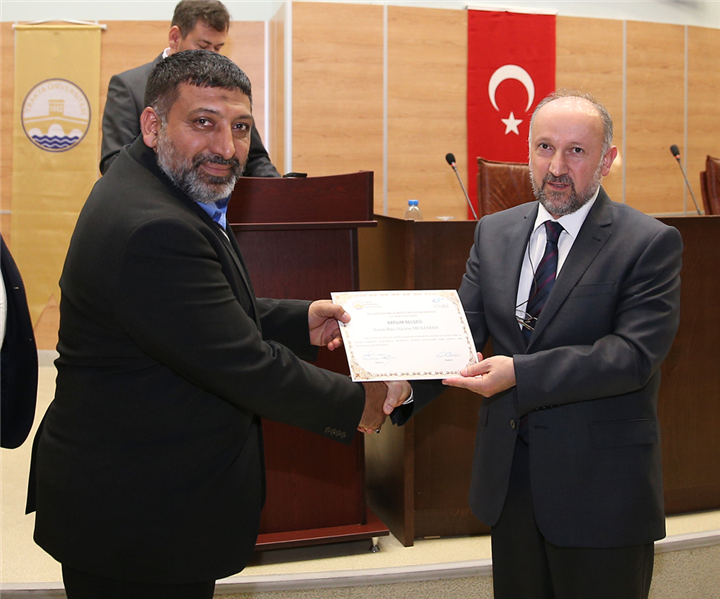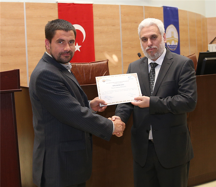 Konuşmalardan sonra gerçekleştirilen sertifika töreninde, seminere iştirak eden yirmi bölge müftüsüyle yirmi imama katılım belgesi; seminere katkı sunan İlâhiyat Fakültesi öğretim üyelerine de teşekkür belgesi takdim edildi.
