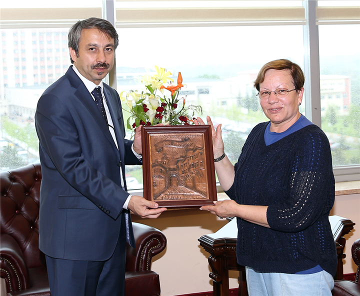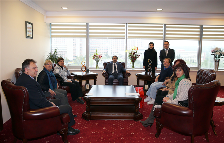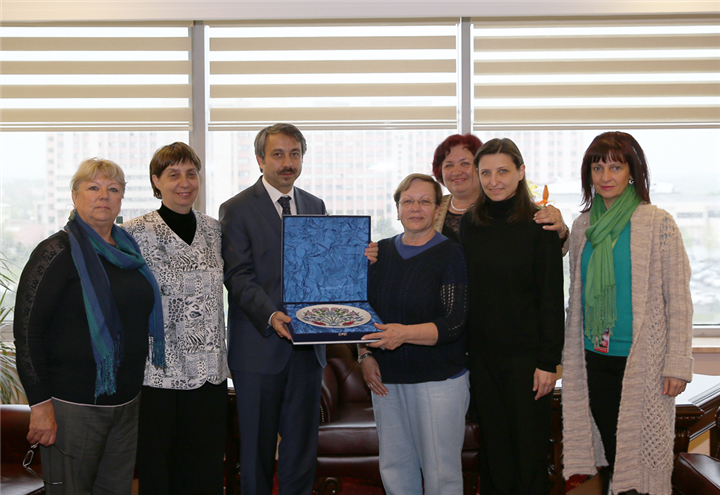Trakya Üniversitesi Devlet Konservatuvarı Sanat ve Eğitim Merkezi'nde bale gösterisi gerçekleştirmek üzere bulunan Bulgaristan Filibe Belediyesi'ne bağlı Bale Stüdyosu Buratino Bale Eğitmeni Masha Ivanova, Pianist Meglena Yordanova, Koreograf Bonka Matova, Filibe Belediyesi Kültür Departmanı temsilcileri Jordanka Kirnova ve Valeria Tsekova 18 Nisan 2014 tarihinde Rektörümüz Prof. Dr. Yener Yörük’ü ziyaret etti.