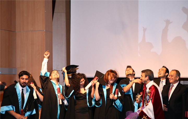 Mezun olan öğrenciler keplerini havaya atarak mezun olmanın mutluluğunu yaşadılar.