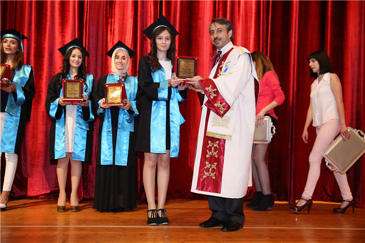 Konuşmaların ardından dereceye giren öğrencilere, protokol ve öğretim elemanları tarafından mezuniyet belgeleri ve plaketler verildi. Tören, öğrencilerin okuduğu “meslek yemini” ile son buldu.