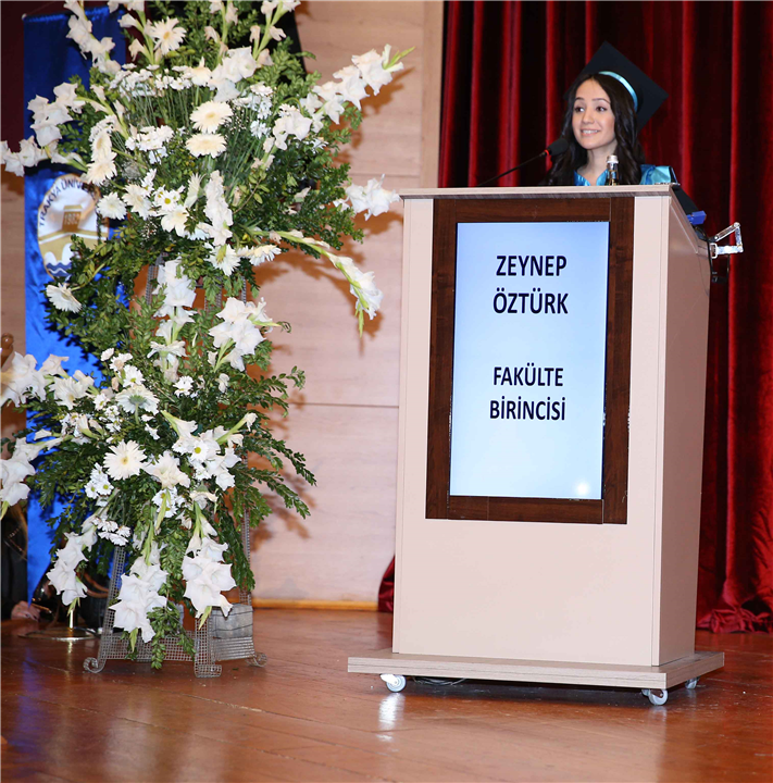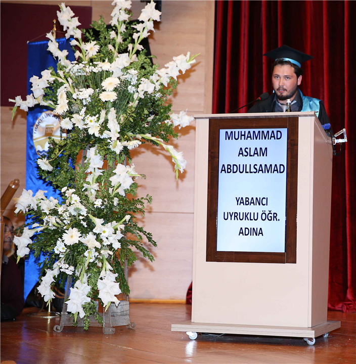 İstiklâl Marşı ve saygı duruşu ile başlayan törenin mezuniyet konuşmalarını öğrenciler adına okul birincisi Canan Deniz ile yabancı öğrenciler adına Muhammad Aslam Abdulsamad yaptı.