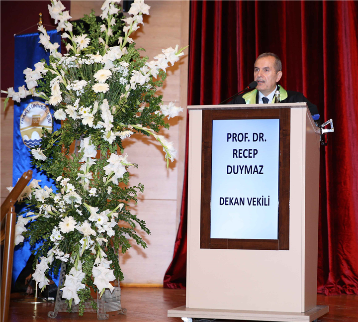 Prof. Dr. Recep Duymaz öğrenci ve velileri tebrik ederek başladığı konuşmasında, “Biliyorsunuz bizim atanma sorunumuz vardı. Bu sorunu çözmek için yıllardan beri akademik toplantılarda alan sınavı yöntemiyle atanmayı öneriyoruz. Son yıllarda bu yöntemin uygulanmakta olduğuna şahit oluyoruz. Bu yöntemin daha âdil ve geniş bir şekilde uygulanabilmesi için formasyon programlarının dört yıllık lisans programı içinde verilmesini istiyoruz. Bu yöndeki çalışmaların devam etmekte olduğunu görmek bizi memnun ediyor” dedi.
