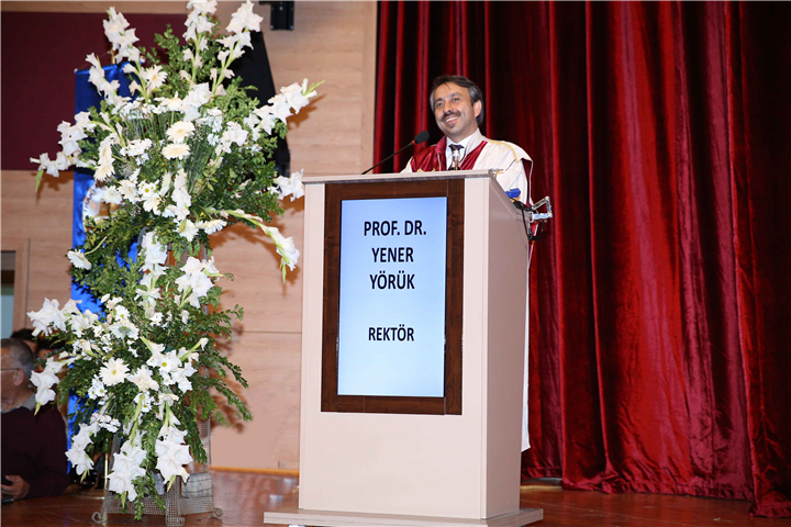 Rektör Prof. Dr. Yener Yörük konuşmasında, “Trakya Üniversitesi; Edebiyat Fakültesi başta olmak Üzere Sosyal Bilimler Enstitüsü, Balkan Araştırma Enstitüsü ve yeni açılan Roman Dili ve Kültürü Araştırma Enstitüsü ile sosyal bilimler alanında ülkemizin en büyük kurumlarından biri olmuştur. Edebiyatı, tarihî arkeolojisi ve yabancı dilleri ile sosyal bilimler çok önemli bir alan. Üniversiteler sosyal bilimlerde geri kalırlarsa diğer alanlarda ilerlemeleri mümkün olmuz. Ne kadar yatırım yapılırsa yapılsın insanın inancı ve motivasyonu olmadıkça hiçbir alanda toplumlar ileri gidemez. Bu anlamda bizlerin ülke olarak sosyal bilimlere çok daha fazla önem vermemiz gerekiyor. Bizler, bu anlamda Trakya Üniversitesi olarak elimizden gelen çabayı öğretim elemanlarımızla birlikte gösteriyoruz. Ben kıymetli hocalarımıza gayretlerinden dolayı teşekkür ediyorum” dedi. Rektörümüz konuşmasının sonunda aileleri tebrik ederek mezun öğrencilerimize bundan sonraki yaşamlarında başarılar diledi.