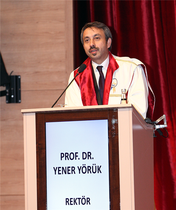 Üniversitemiz Rektörü Prof. Dr. Yener YÖRÜK konuşmasında mezun olan öğrencileri uğurlamanın hüznünü taşıdığını söylerken, uzun yıllar süren eğitimlerinin kendileri ve ülkemiz için hayırlı olmasını diledi. Edebiyat Fakültesi’nin köklü bir geçmişe sahip olması nedeniyle salonlara sığmadığını söyledi. Üniversitelerin kültürümüz ve medeniyetimizin öğretilişi açısından çok önemli kurumlar olduğunu belirten YÖRÜK, Sosyal Bilimlerin önemini vurgularken cefakar hocaları kutladı. Tarihi dokusu en gelişmiş olan Edirne şehrinde okudukları için öğrencilerin çok şanslı olduğunu belirten YÖRÜK, konuşmasının sonunda öğrenci ailelerine tebriklerini belirtip öğrencilerin yolunun açık olmasını diledi. Ayrıca öğrenci ailelerine sağlık müzesini gezmelerini önerdi.