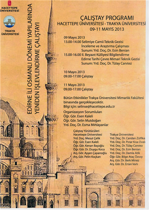 Edirne İli Osmanlı Dönemi Yapılarında Yeniden İşlevlendirme Çalıştayı hakkında detaylı bilgiler ektedir.