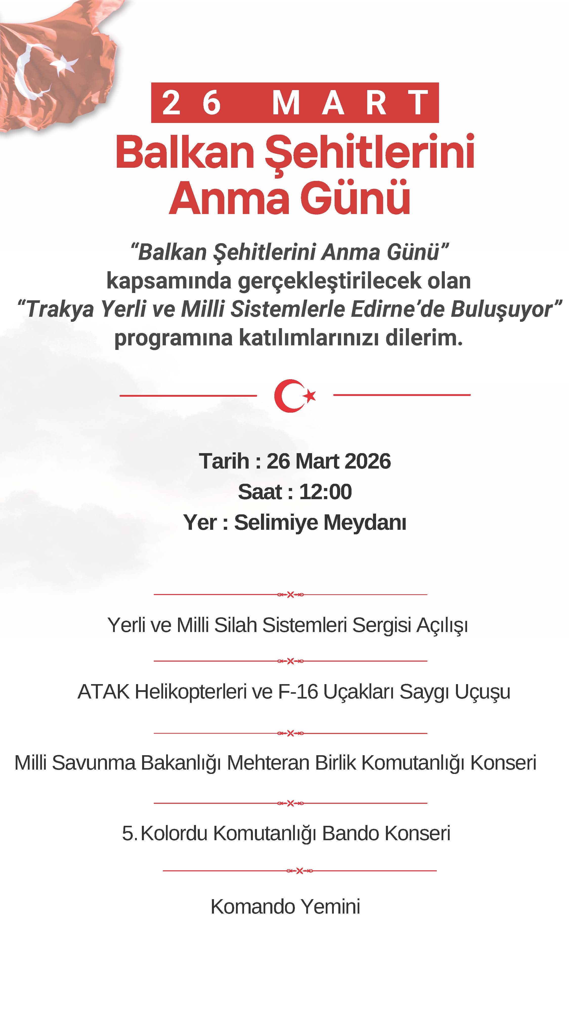 EDİRNE VALİLİĞİ 26 MART BALKAN ŞEHİTLERİNİ ANMA GÜNÜ PROGRAMI