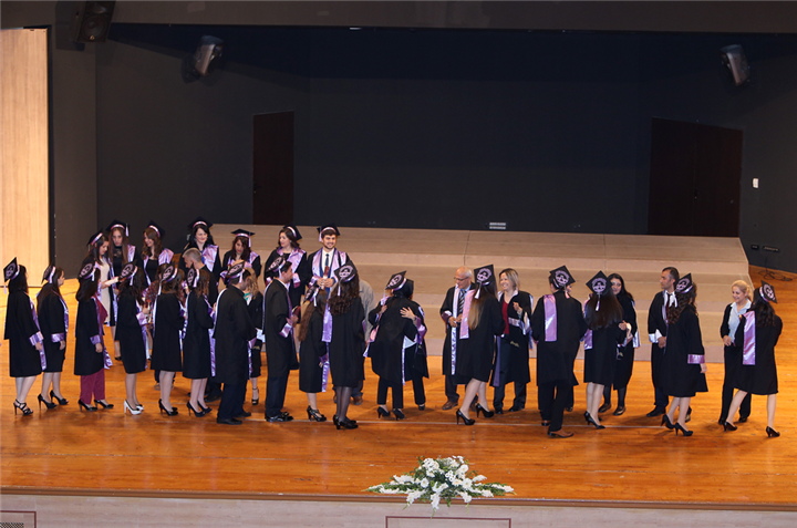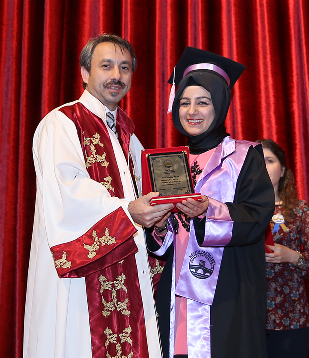 Konuşmaların ardından dereceye giren öğrencilere, protokol ve bölüm hocaları tarafından mezuniyet belgeleri ve plaketler verildi. Tören, öğrencilerin okuduğu “meslek yemini” ile son buldu.
