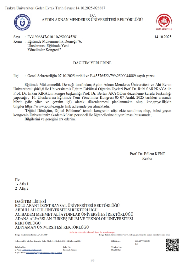 EĞİTİMDE MÜKEMMELLİK DERNEĞİ "6. ULUSLARARASI EĞİTİMDE YENİ YÖNELİMLER KONGRESİ"