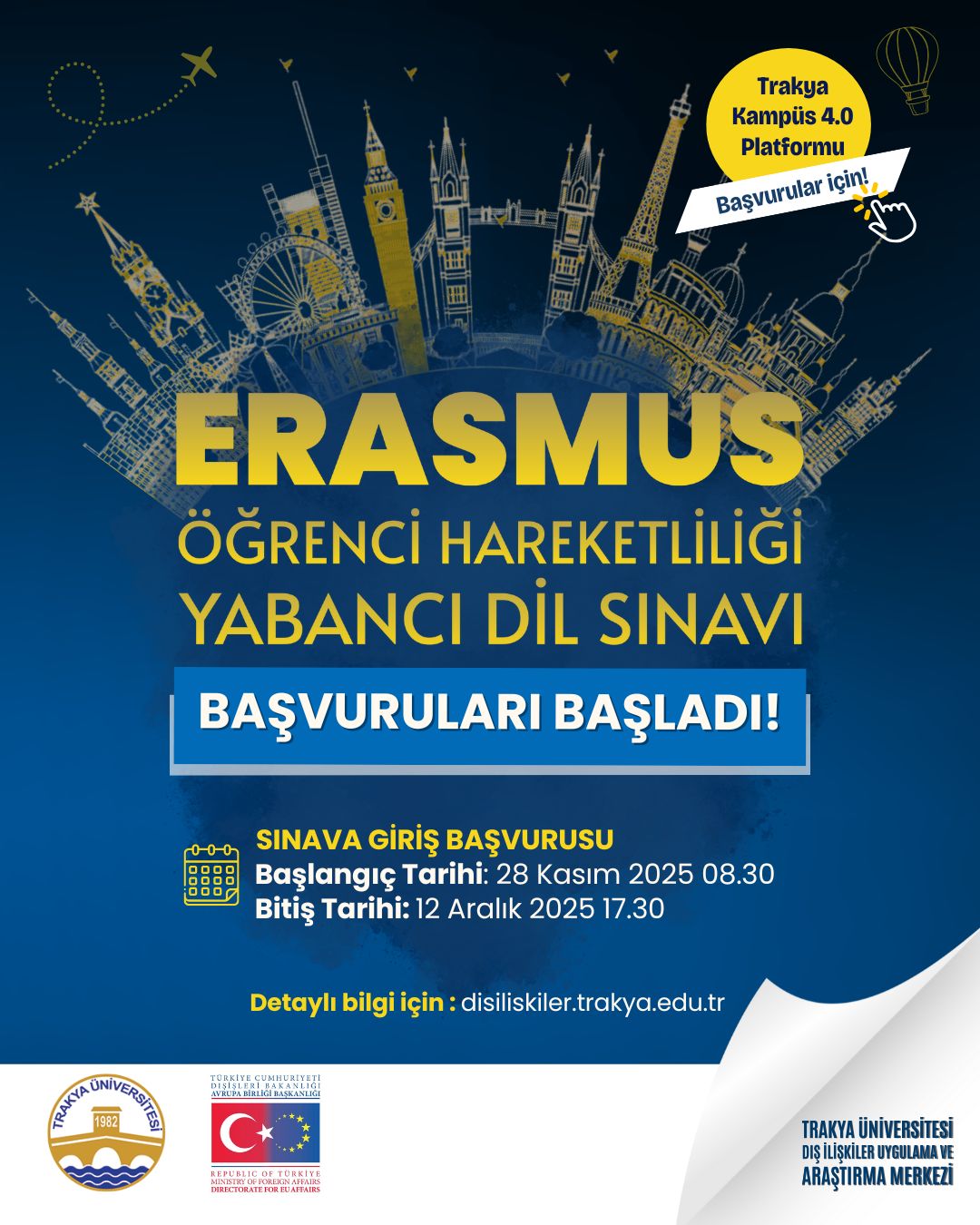 ERASMUS ÖĞRENCİ HAREKETLİLİĞİ YABANCI DİL SINAVI BAŞVURULARI BAŞLADI!