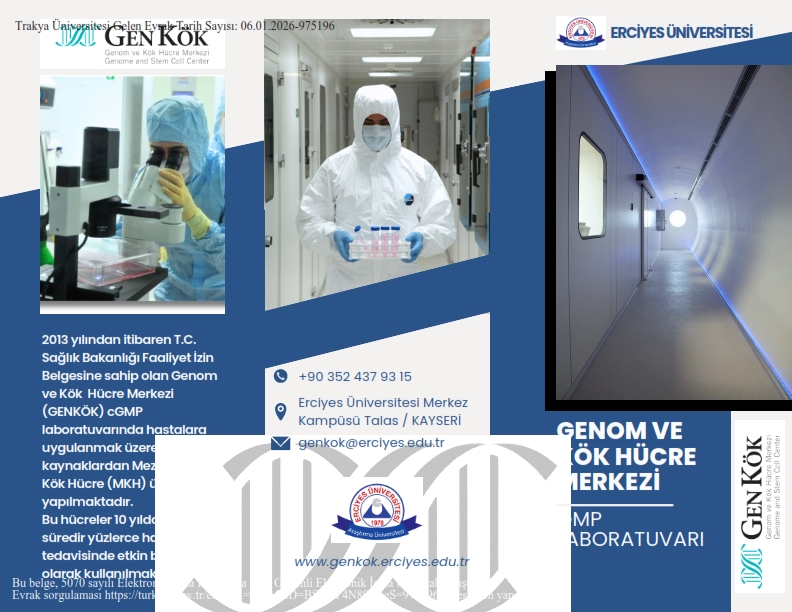 ERCİYES ÜNİVERSİTESİ GENOM VE KÖK HÜCRE MERKEZİ (GENKÖK) MEZENKİMAL KÖK HÜCRE ÜRETİME İLİŞKİN BİLGİLENDİRME
