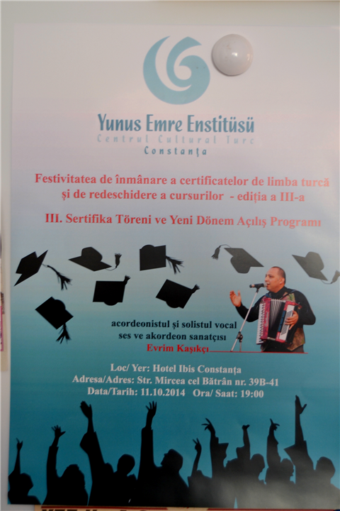 11 Ekim 2014 tarihinde Köstence’de gerçekleştirilen programa; Türkiye Cumhuriyeti Köstence Başkonsolosu Ali Bozçalışkan ve Yunus Emre Enstitüsü Köstence Türk Kültür Merkezi Müdürü Ali Oğuzhan Yüksel’in yanı sıra Türk İşadamları Derneği (TİAD) Başkanı Zeki Uysal ve dernek üyeleri, Köstence İl Eğitim Türkçe Müfettişi, Mecidiye Kemal Atatürk Ulusal Koleji öğretmenleri, Zübeyde Hanım Anaokulu öğretmenleri, basın temsilcileri ve Yunus Emre Enstitüsü Köstence Türk Kültür Merkezi kursiyerleri katıldı.