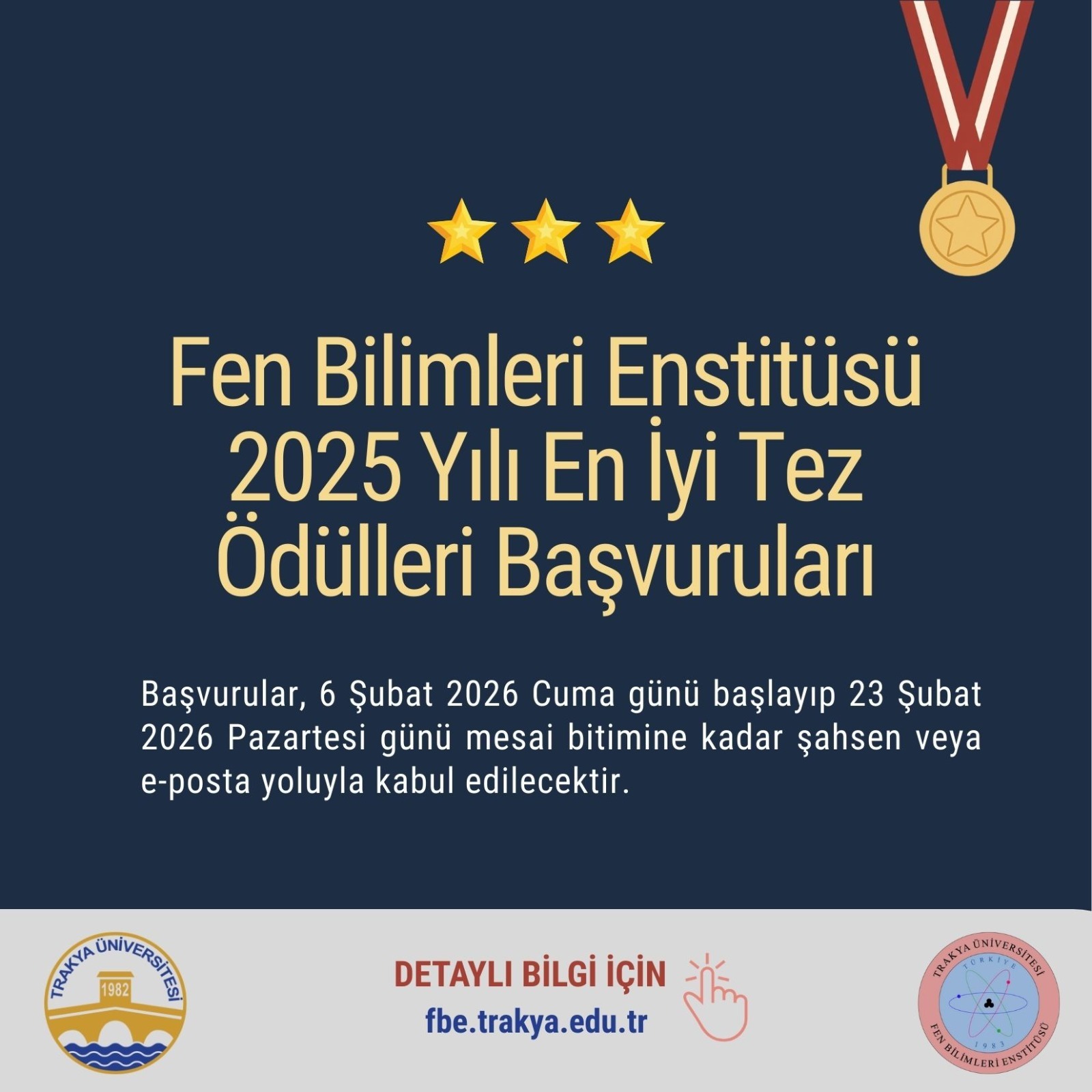 FEN BİLİMLERİ ENSTİTÜSÜ 2025 YILI EN İYİ TEZ ÖDÜLLERİ BAŞVURULARI