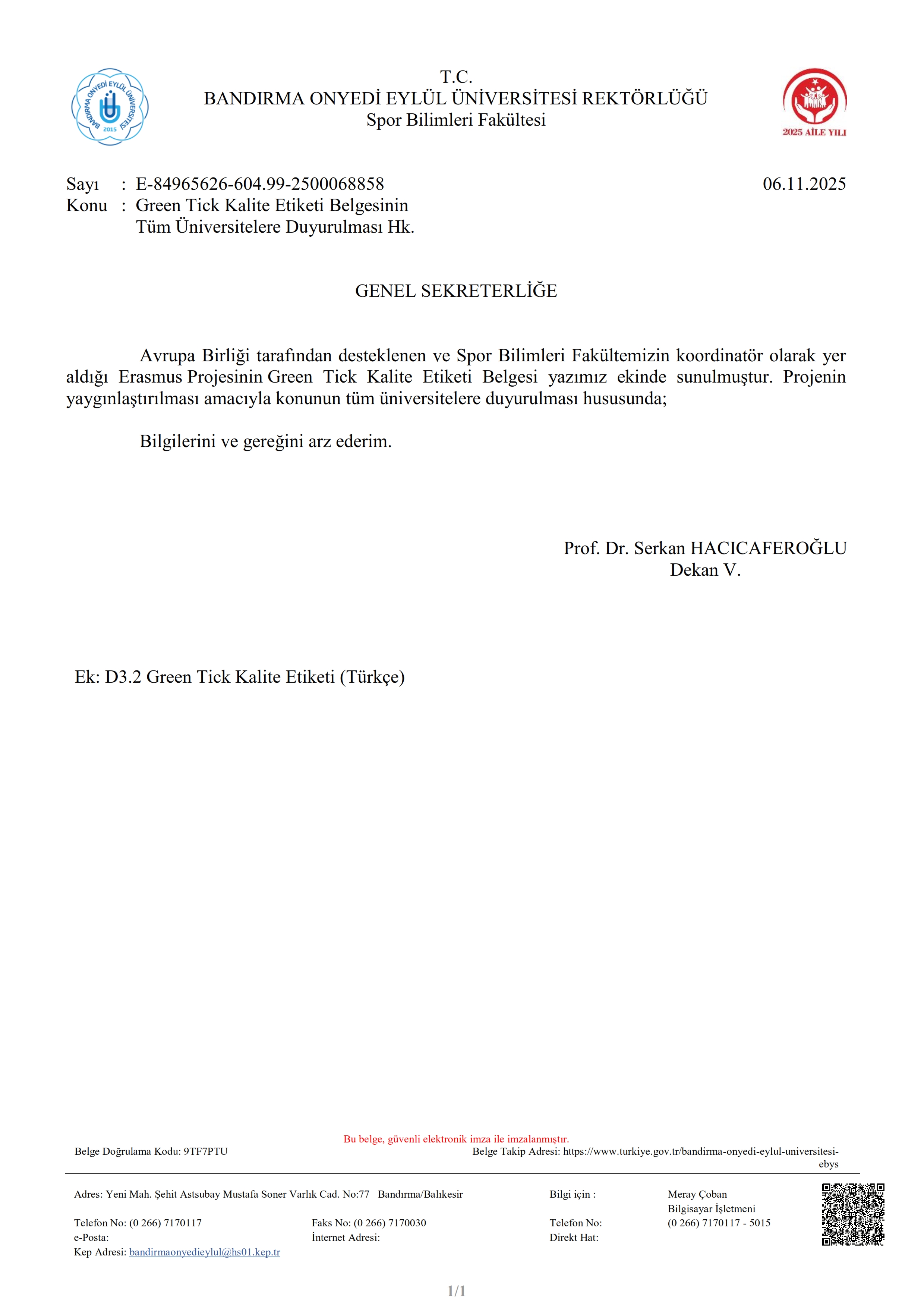 GREEN TİCK KALİTE ETİKETİ BELGESİ